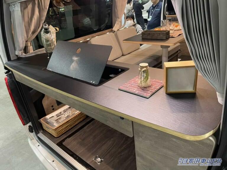後部にもカウンターテーブルが設けられている。バックドアを開けてすぐの場所なので、車外で作業する際にも使いやすい。