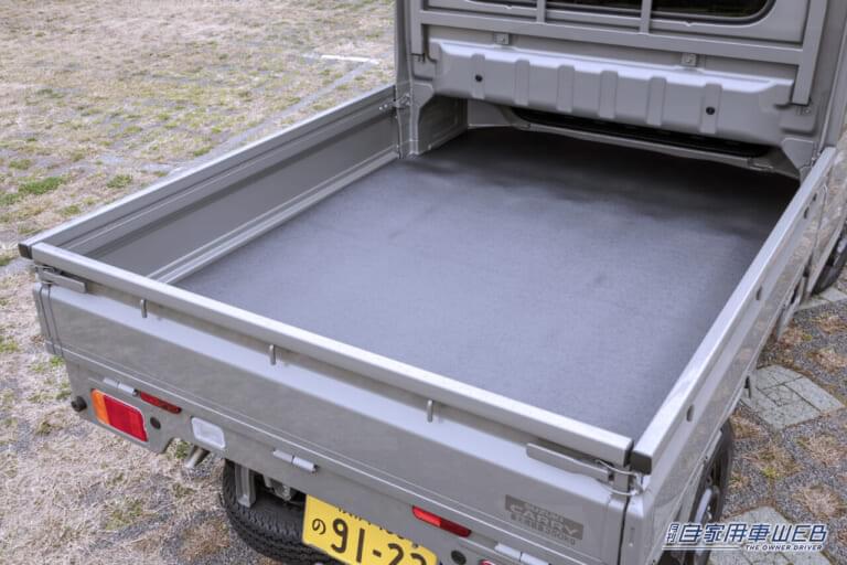 荷台のフロア長は2030mm。荷台床面は650mm。床面は防錆加工が施されており、汚れなどをまったく苦にしない。いろいろな道具を気兼ねなく積み込むことができる。