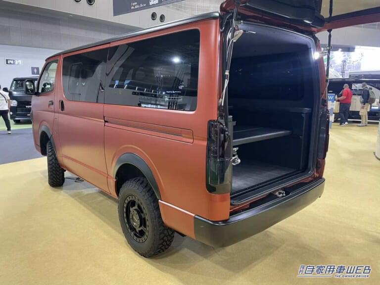 ベースの車両はトヨタのハイエース。カスタムの幅が広く、アウトドアを中心としたユーザーに、非常に人気の高い車だ。