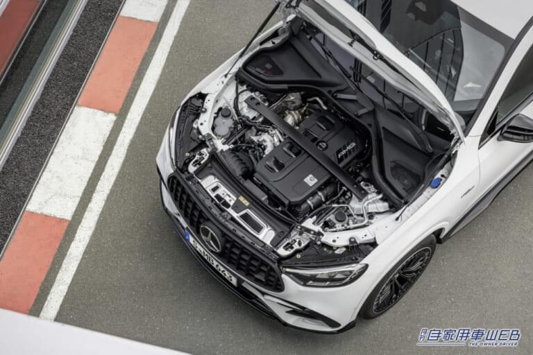 GLC 43 クーペは、「One man, One engine」の主義に従い熟練のマイスターが手作業で丹念に組み上げる直列4 気筒エンジン「M139」を搭載。最高出力421PS(310kW)、最大トルク500N・m を発揮し、F1由来の技術をベースとしたエレクトリック・エグゾーストガス・ターボチャージャーも搭載された。
