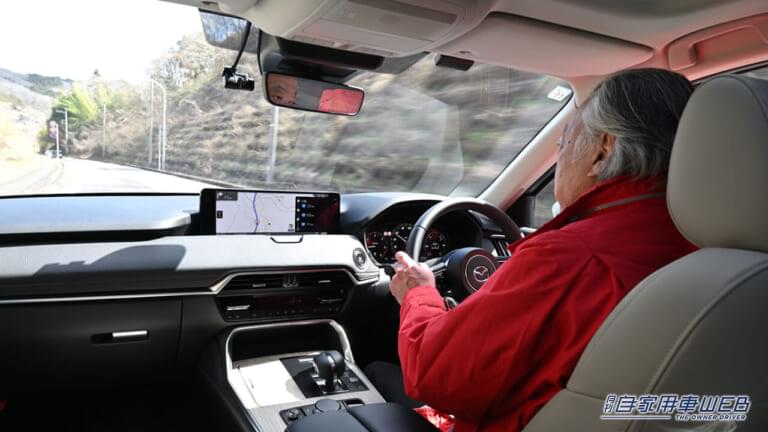 乗り心地の改善を目的に新しくチューンされたサスを組み込んだ改良型は、大雑把な硬柔では相変わらず硬めの設定だが、苛むような細かな突き上げは激減。突き上げを「いなす」とか「面取り」というような力の分散を思わせる感覚が加わった。といっても、極端に柔らかくなったということはなく、前述したとおり売りは新開発のFRプラットフォームによる人馬一体の操縦感覚。CX-60の魅力であるSUVとしてのオンロードのスポーティな走りは健在であった。