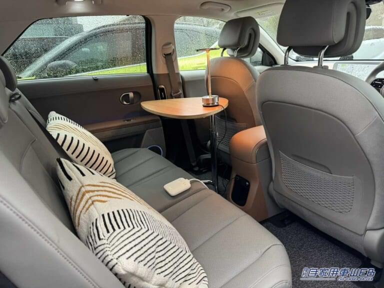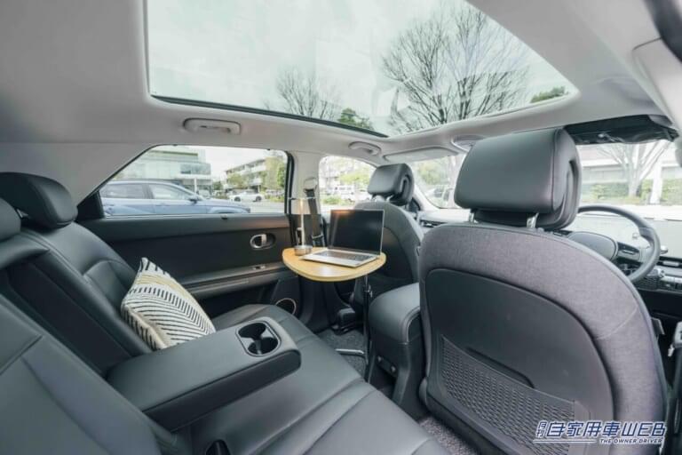 IONIQ 5の車内を、シェアラウンジのひとつとして使うことができるこちらのサービス。Wi-Fiと冷暖房を完備し、100VコンセントとUSB Type AおよびType Cの電源も利用可能。オフィスに必要な要素を十分に備えている。