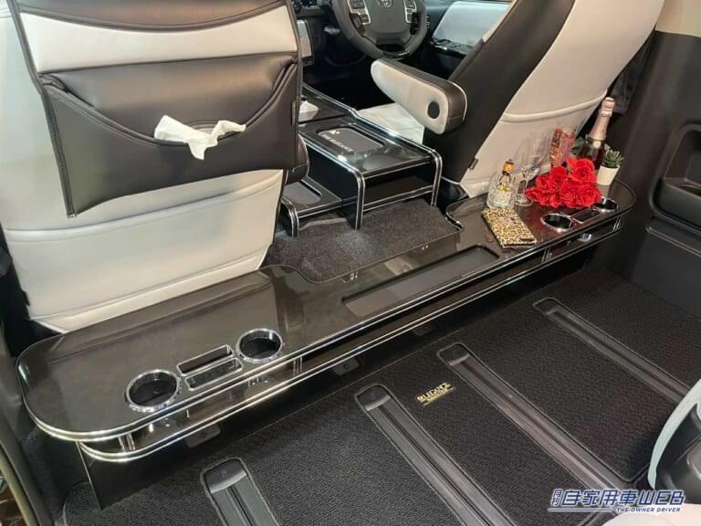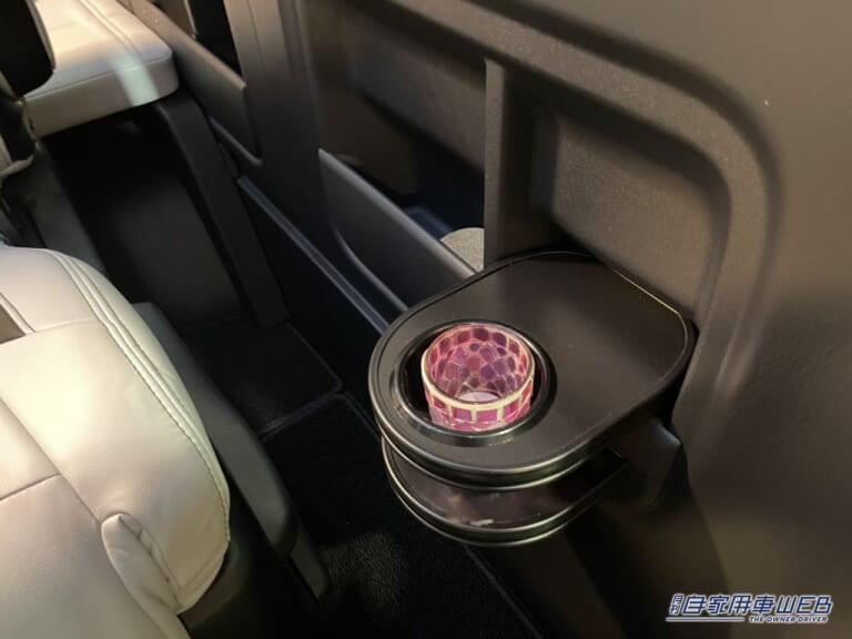 1列目のシートの裏側には、カウンタータイプのテーブルが設置されている。2列目のシート2席に対し、設けられたドリンクホルダーは4つ。さらに左右のシートの間にもドリンクホルダーが設けられている。