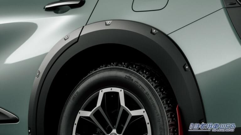アウトドアな世界観を表現した特別仕様車「ランドスケープ」は、専用外装色(ブラック×アーバンカーキ)、オーバーフェンダー、マッドガード、ヒッチメンバー、60:40分割可倒式リヤシート(トランクスルー)などを特別装備している。