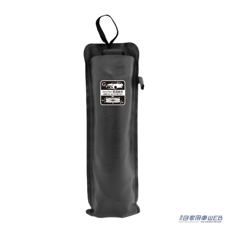 車載用パラソルサンシェード「HED-4171」は、折りたたみ傘のように収納出来る。従来のアルミタイプだと収納しづらいクルマにはおススメのアイテムだ。