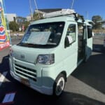 |ミントグリーンのボディが爽やかで印象的! ダイハツ ハイゼットカーゴがベースの軽キャンパー