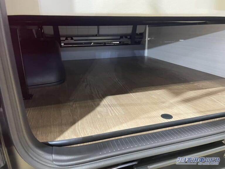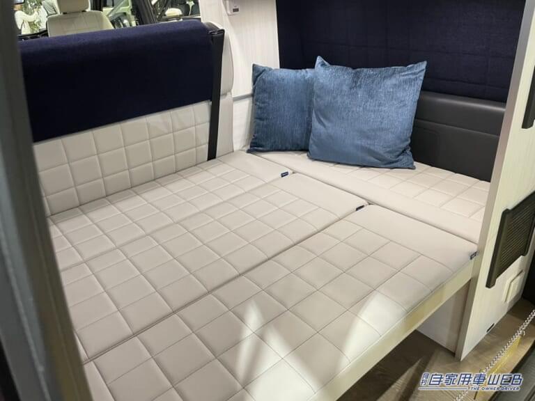 ベッド部分は広々としたフラットシート。水や汚れに強い素材を採用しており、アウトドシーンの利用でも安心だ。