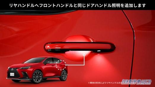 さらに、同じくNXの最新モデルに採用されているリヤアウトサイドハンドルへの照明の追加(左右2か所)も、上記のアップグレードとのセットを前提に、9万9000円で提供する予定とした。