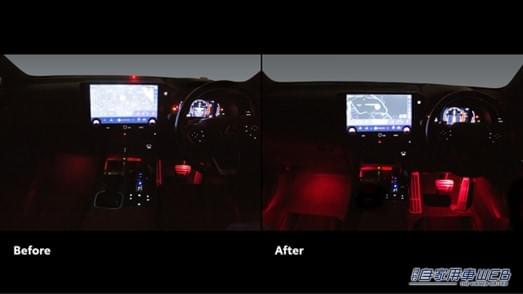 | アップグレード項目・価格(税込み・作業工賃を含む) | 室内イルミネーションの明るさのアップグレード ▽足元照明(運転席・助手席)、▽フロントトレイイルミネーション、▽ドアトリムイルミネーション(4席分)、▽ドアハンドルランプ(4席分)のあわせて11か所 | 6万6000円 | |