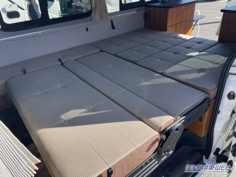 下段のシートは広々としており、大人2名が就寝可能なスペースが確保されている。大型の荷物を積み込むのも安心な広さだ。