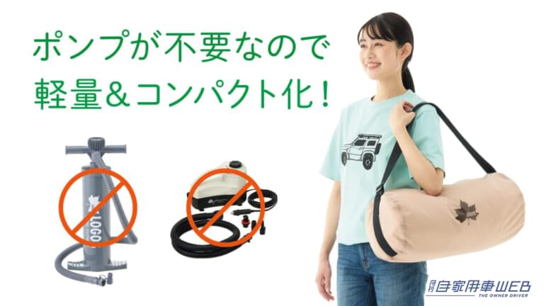 「Tradcanvas オートエアマジックドーム DUO」は、スイッチひとつで簡単に設営できる電動ポンプ内蔵の2人用エアテント。最大の特徴は設営の簡単さ。