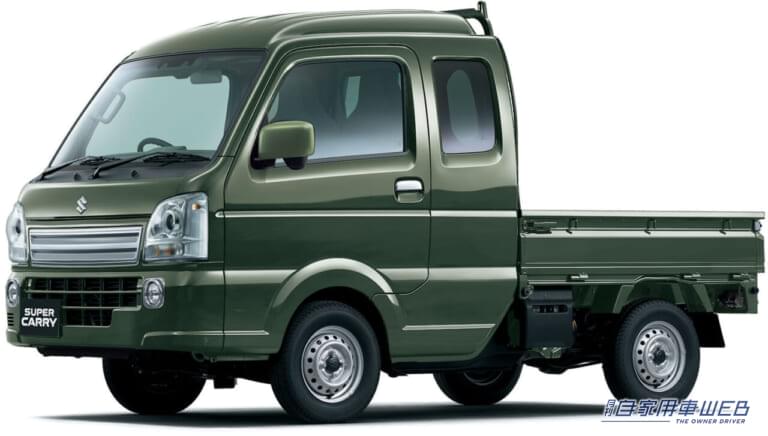 スズキは、軽トラック「キャリイ」「スーパーキャリイ」「キャリイ特装車」の一部仕様変更を発表した。新ボディカラーとして「デニムブルーメタリック」も設定されている。