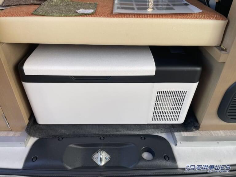 シート下は収納スペースとなっているので、ポータブル冷蔵庫などを設置することもできる。