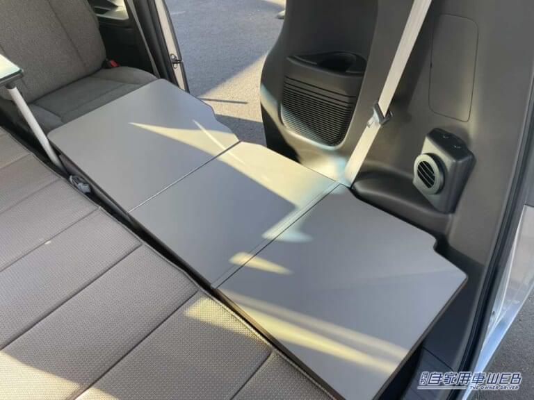 車内はフルフラットにテーブルをプラスしたレイアウト。