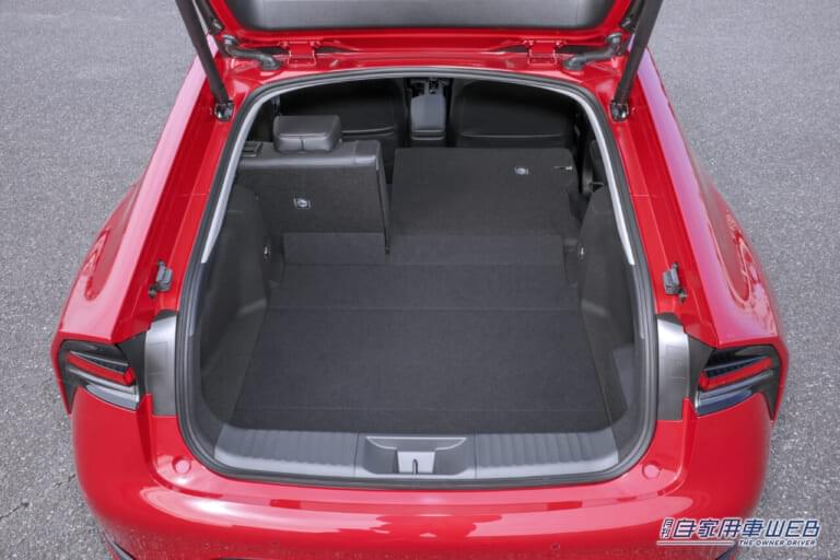 先代は保守的高級感とスポーティを融合させたようなインパネデザインだったが、現行型はあざとい演出を抑えた、程よい上品さを漂わせる雰囲気で纏められている。荷室は客室の延長とした設えで車格相応の広さは確保され、実用性の高さも健在だ。