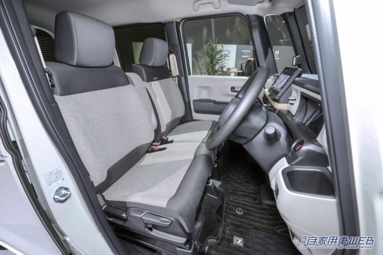 ソファーのような座り心地の良さを追求したフロント&リヤシート。前後とも十分なスペースが確保されている美点もまったく変わっていない。運転席&助手席のシートバックには、折りたたみ式のシートバックテーブルが配置。コンビニフックも備わっている。