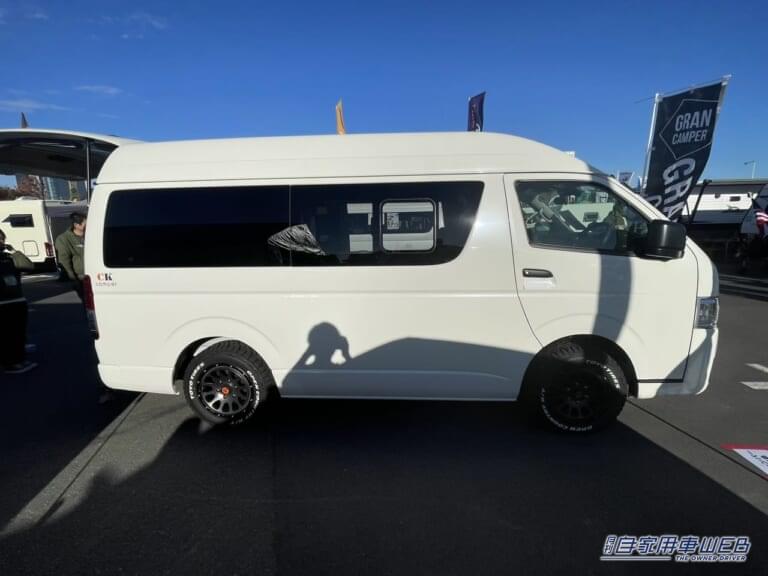 ベースの車両はトヨタのハイエース。カスタムの幅が広く、アウトドアを中心としたユーザーに、非常に人気の高い車だ。