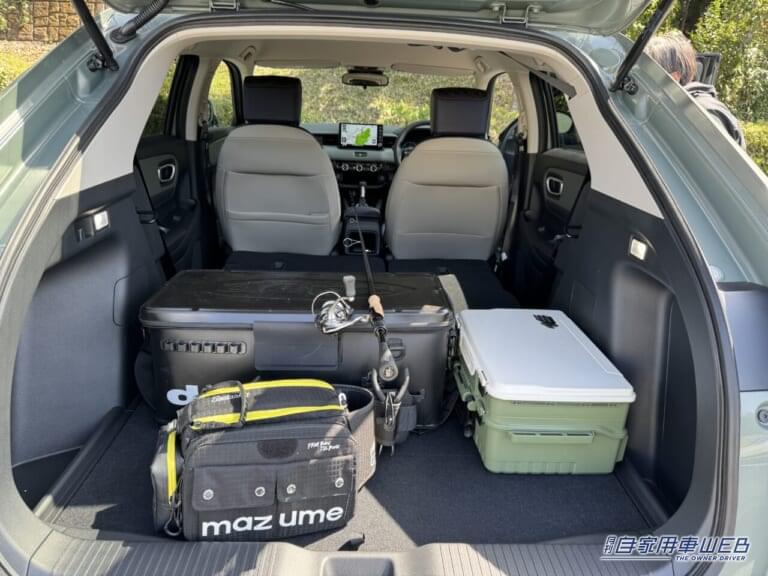 実際に道具を積んだ例。この量でも荷室にはまだまだ余裕がある。ロッドの収納は、タウンユースの際にも邪魔にならない脱着が簡単なロッドホルダーがおすすめ。