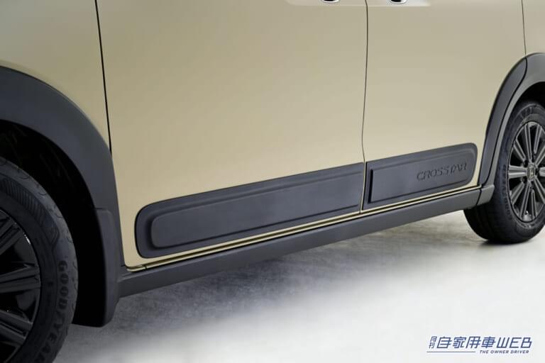 フリード CROSSTARの「Active-Tough Style(アクティブタフスタイル)」は、「フロントグリル(ベルリナブラック/ブラッククロームメッキ)」、「フロントガーニッシュ」、「ボディサイドモール」といったシルバーとブラックを基調としたアクセサリーを中心に、フリードCROSSTARのアクティブ・タフイメージをより一層高める。