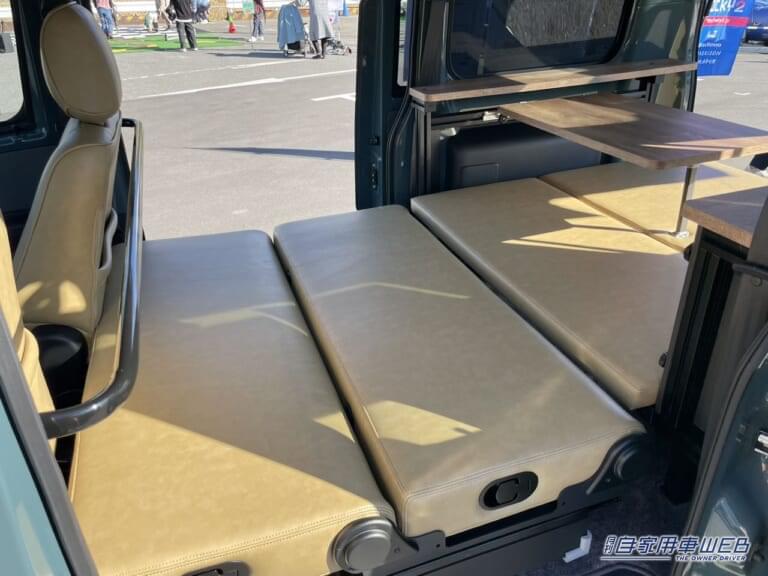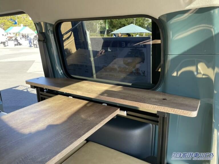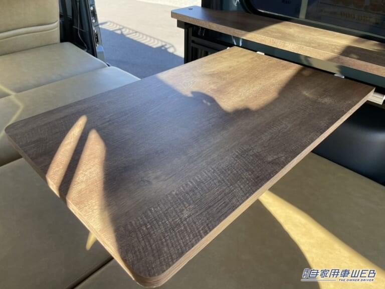 フラットシートでも使うことのできるテーブルは、邪魔にならず使いやすい適度なサイズ感。