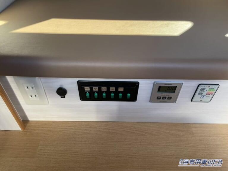 車内後部には、キャンピングカーに欠かせない各種機能が集まっている。