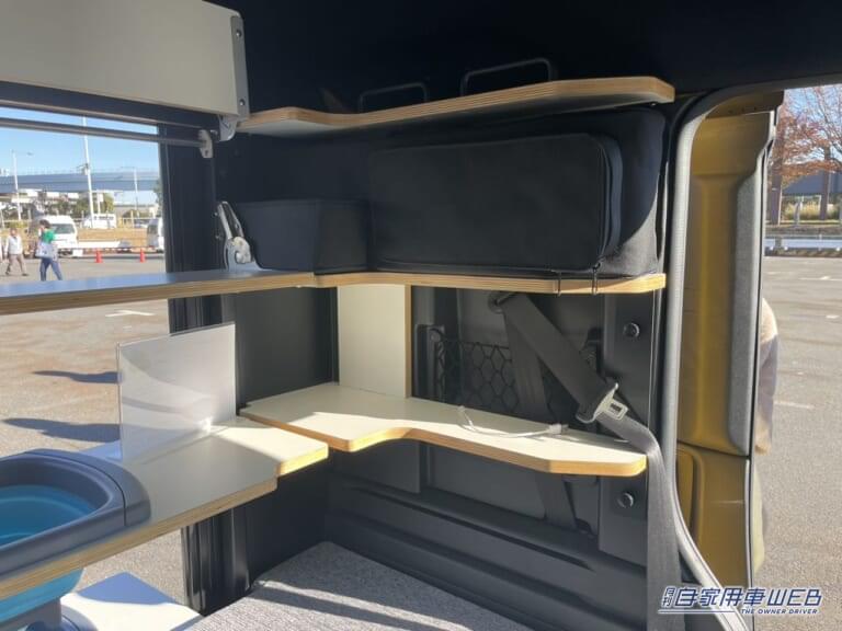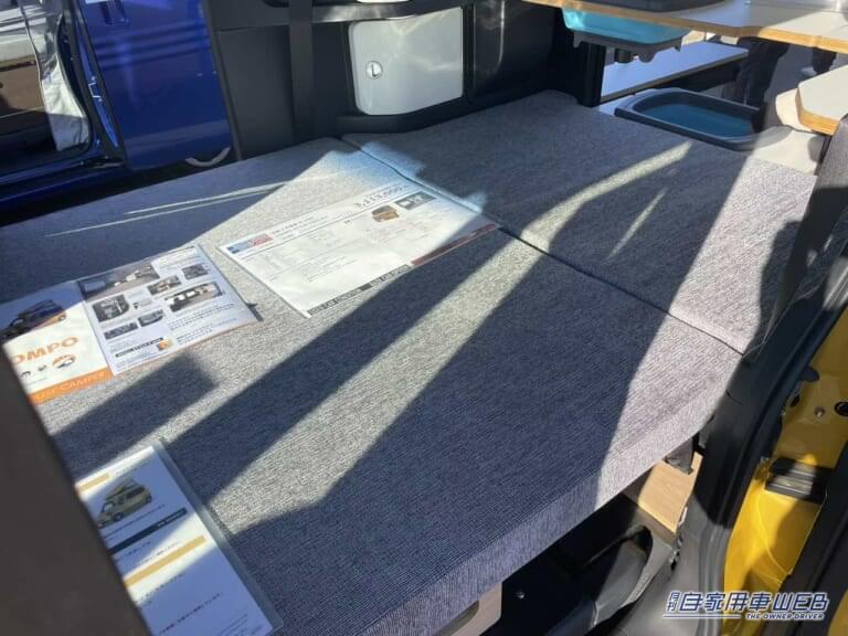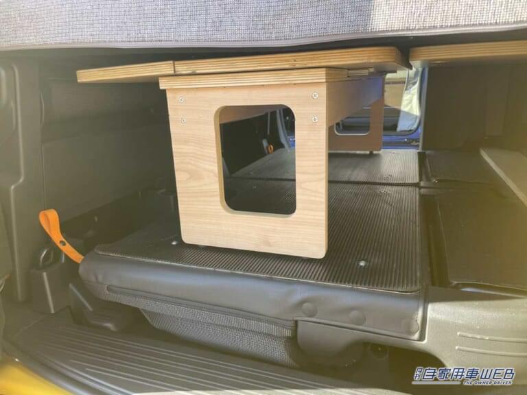 助手席部分もフラットにすることで、荷物を積んだまま車中泊も可能なレイアウトとなっている。