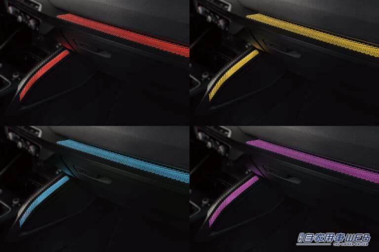 前後シートにはパーシャルレザー素材を採用。フロントはシートヒーター付きのスポーツシートになる。またインパネまわりは、マルチカラーアンビエントライティングとそれに対応する専用のライトグラフィックデコラティブパネルを装着。上質さと個性的な演出を楽しむことができるスペースになっている。