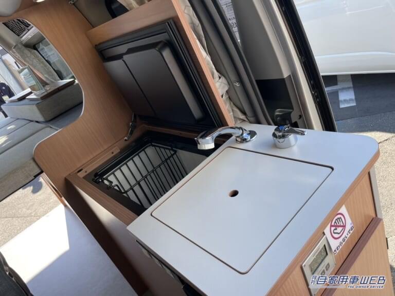車内右側にはキッチンカウンターが設置されている。