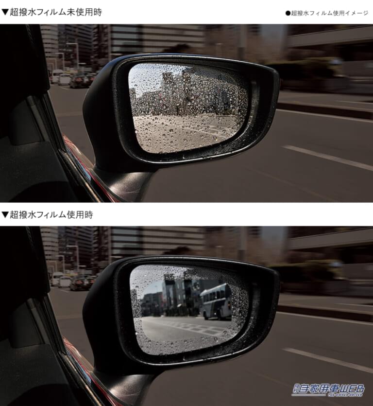 ●超撥水フィルムで雨がつかず、視界がクリアに