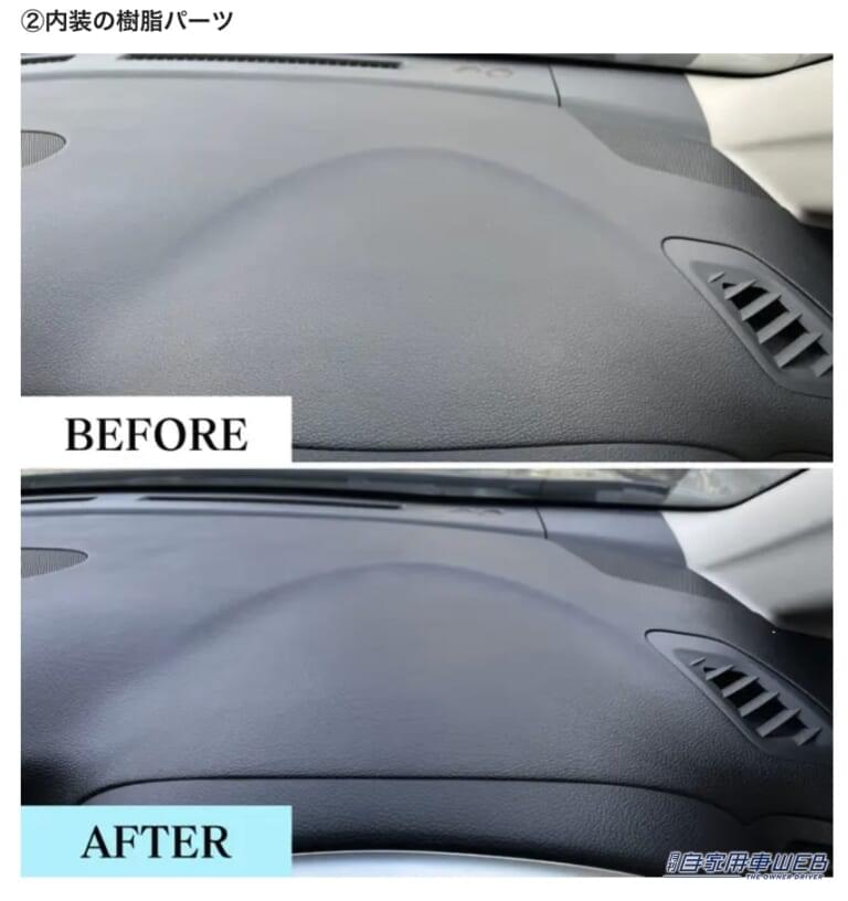 「KLEEP 樹脂コート剤」は、高い耐久性、抜群の撥水力、簡単な作業性を備えたプロの現場でも使用されているコート剤だ。実際に使用したユーザーからは「樹脂パーツの黒艶が戻った!」「手入れが楽になりました!」「明らかに汚れが付きづらくなった!」などの声が届いている。