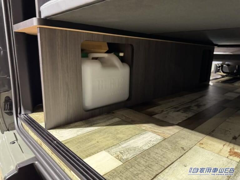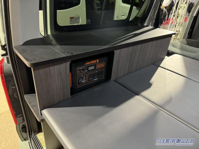 車内左には棚が設置されている。ポータブルバッテリーを収納するスペースも好けられている。