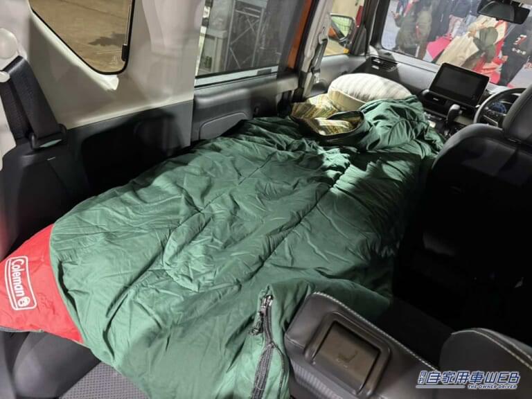 車内はシートとフラットスペースを組み合わせたレイアウト。右側は通常のシートを活かし、左側にフラットスペースを設けている。