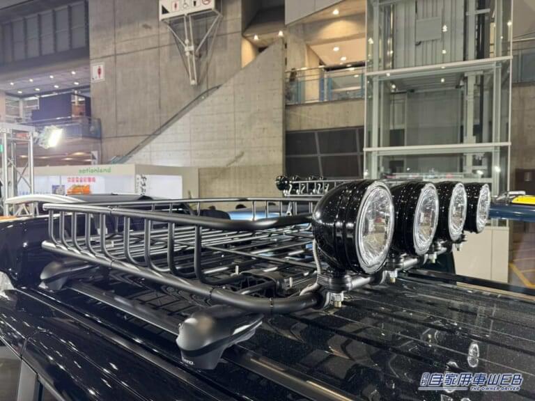 ルーフにはキャリアとライトを備えている。荷物が多かったり、灯りのない場所でのアウトドアシーンには最適な装備だ。