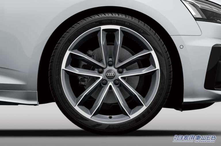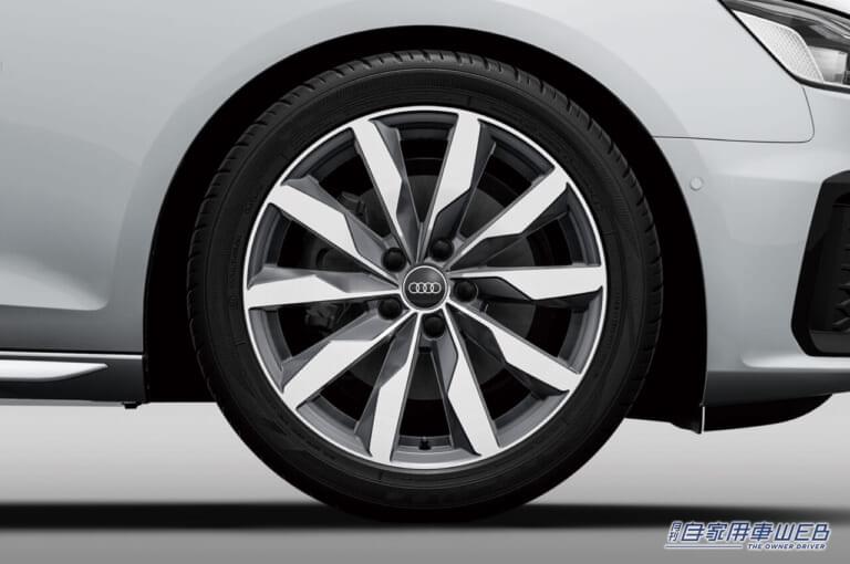 Audi Sport製マットチタングレーポリッシュト5アームトラペゾイドデザイン8Jx18アルミホイール。Audi A4 / A4 Avant 45 TFSI quattro S line Meisterstückに装着。