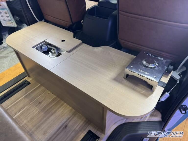 2列目のシートの前には小さめのシンクも備えたカウンターテーブルが設置されている。