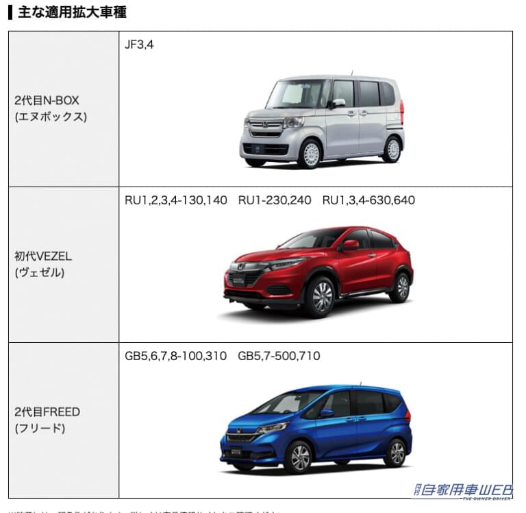 対象となるモデルは、2代目N-BOX、初代ヴェゼル、2代目フリードの3モデルになる。