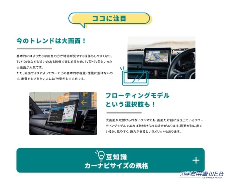カーナビを取り付けた際のイメージも掲載。