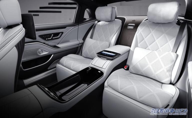 中央のエアコン吹き出し口やマイバッハエンブレムには専用のダークシャドウグロスパーツを採用。また、センターコンソールも特別仕様車専用のマイバッハパターンをあしらうことで、メルセデス・マイバッハを体現する美しさと高級感に加えエクステリアにマッチしたインテリアに仕上げている。