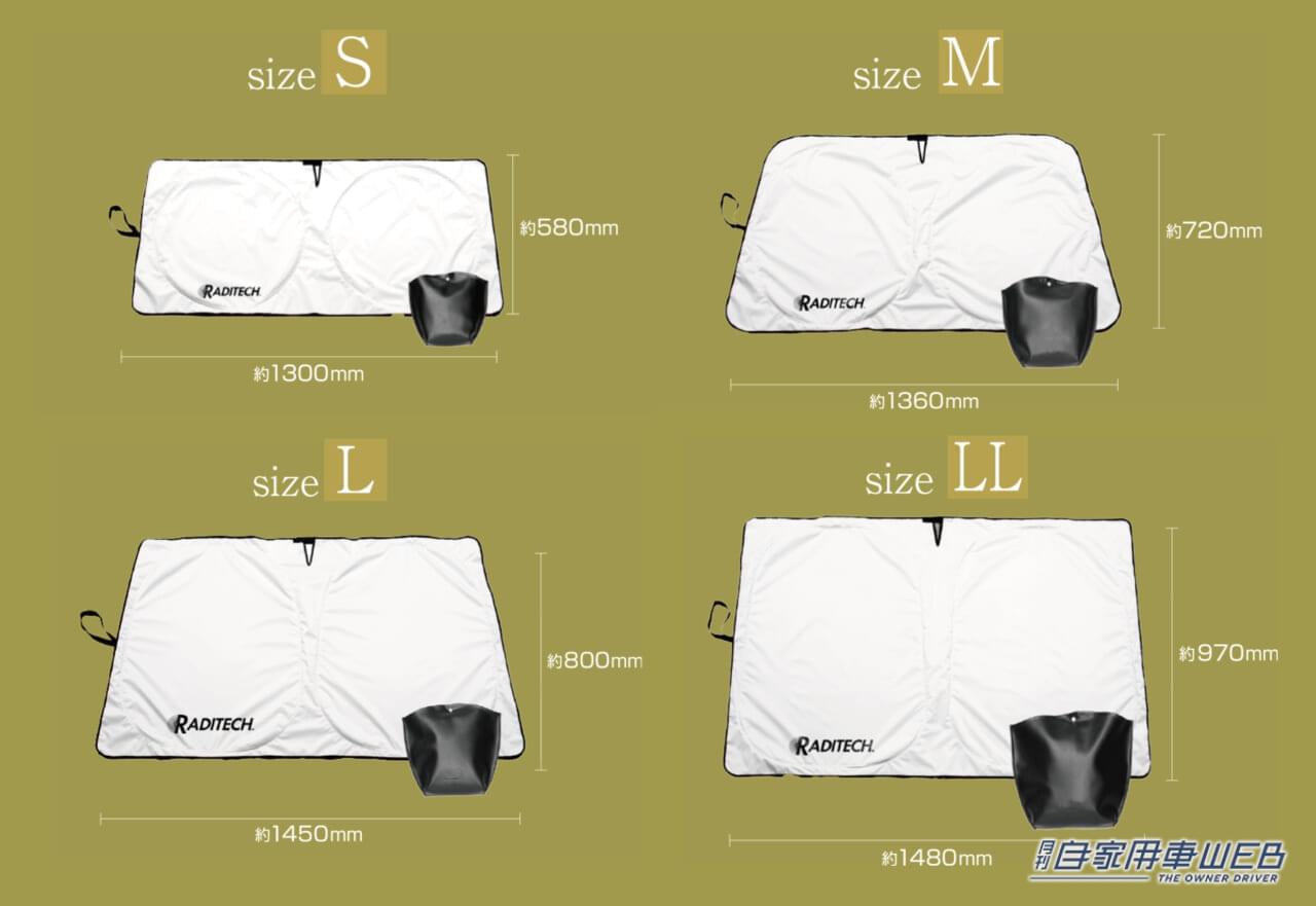 クルマのウインドウサイズに合わせて選べる4サイズがラインナップ