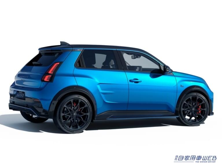 ベースとなる「RENAULT 5 E-TECH ELECTRIC」は、往年の「ルノー5(サンク)」をBEVとして現代に甦らせたモデルで、「アルピーヌA290」は各部にアルピーヌオリジナルのテイストをプラス。足回りにアルピーヌ スポール/バンプストップ&マルチリンクリアサスペンションやブレンボ製モノブロック4ピストンフロントキャリパー、専用19インチアルミホイールなどを装備。アルピーヌを特徴付けるパフォーマンスと敏捷性、ライトウェイトという3つの要素を備えた電動スポーツモデルとしている。