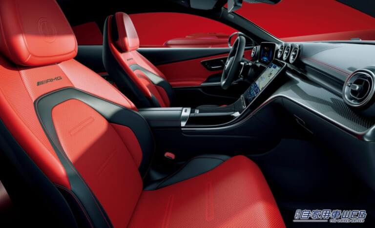 インテリアトリムは、標準ではブラックオープンポアウッドインテリアトリムだが、AMGダイナミックパッケージではAMGカーボンファイバーインテ リアトリムにアップデートされる。シートは2色のナッパレザー(ブラックとトンカブラウン/ブラック)を用意。オプションで2色の AMGナッパレザー(ブラックとパワーレッド/ブラック)も用意される。