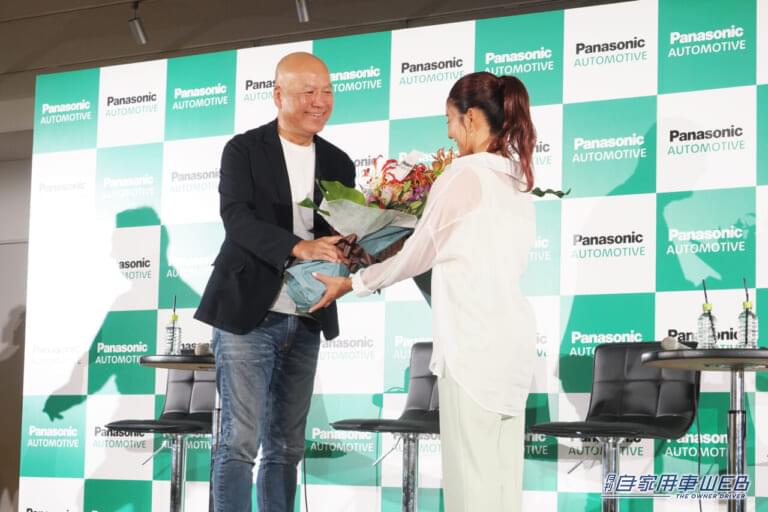 会場にはパナソニックオートモーティブシステムズ社の社員70人が集まり、松田選手、社長の永易正吏さん、社員代表の船戸涼平さん、河野円香さんがトークショーを行った。