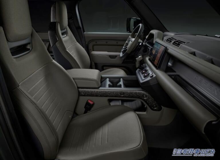 インテリアは、従来のレザーより30%軽量化し、耐久性に優れたUltrafabricsTM PUを2タイプ用意。さらに乗員をドライブに没頭させるボディ&ソウルシートテクノロジーを搭載した新しいパフォーマンスシートを「DEFENDER」として初採用している。