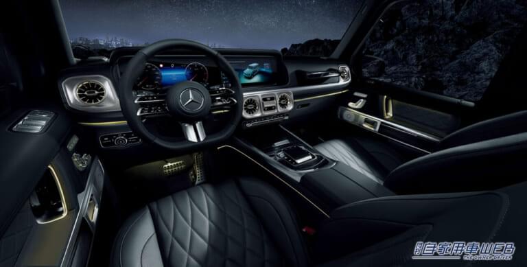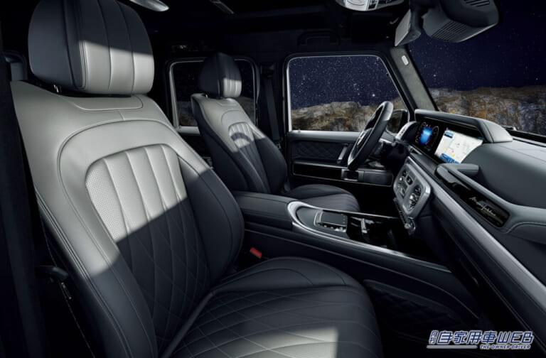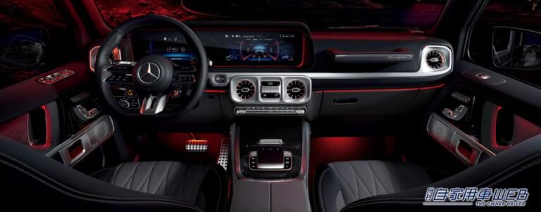 今回の改良でMBUXをGクラスとして初搭載したほか、ディファレンシャルロック(デフロック)スイッチ周辺の再設計や、最新世代のマルチファンクションステアリングホイールの採用などが加えられている。