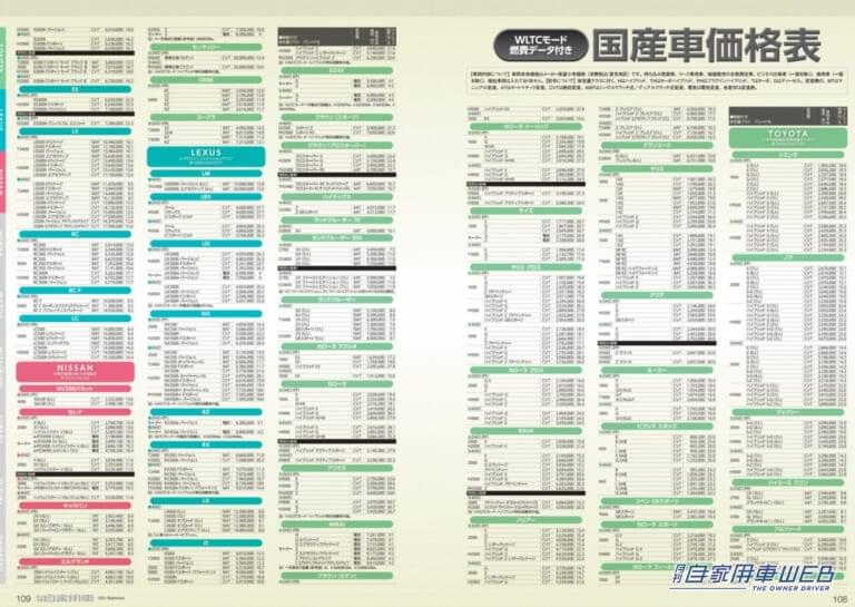 WLTCモード燃費付き 国産車価格表