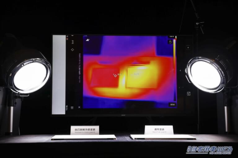 日産は2024年8月6日に、夏場の直射日光による車室内温度の過度な上昇を防ぐことで、エアコン使用時のエネルギー消費を減らし、燃費や電費の向上に貢献する”自動車用自己放射冷却塗装”の実証実験を公開した。