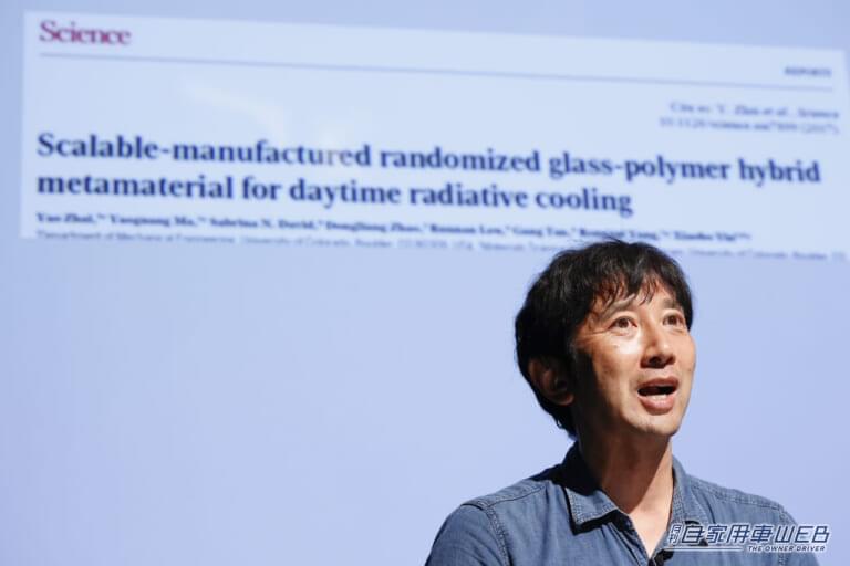 今回は「熱のメタマテリアル」として、晴れた冬の夜間から早朝にかけて起こる放射冷却と同じ現象を人工的に引き起こし、太陽光を反射するだけでなく、クルマの屋根やフード、ドアなどの塗装面から熱エネルギーを大気圏外に向かって放出することが可能となり、車内の温度上昇を抑制するという。
