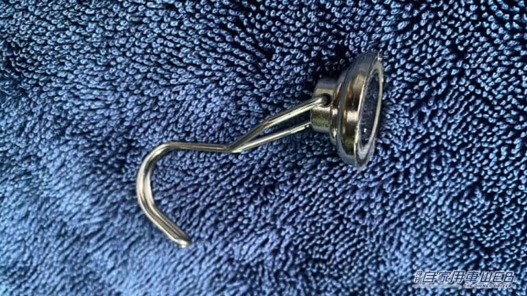 磁石付きフックは、ホームセンターや100円ショップなどで入手可能。