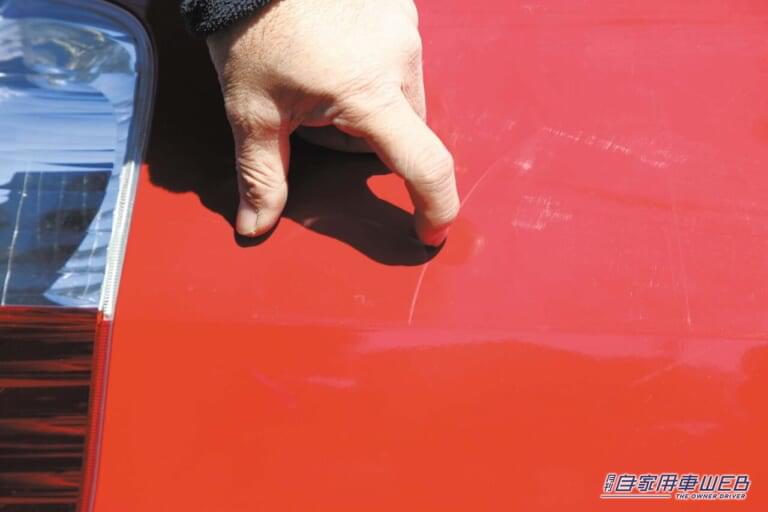 爪が軽く引っかかる程度の浅い溝や、塗装表面に付着した塗料カスなどのたいていの異物は、コンパウンドで磨き落とすことができる。