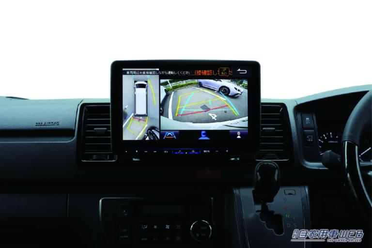 トヨタ純正のパノラミックビューモニターの映像を11型大画面で確認できる。